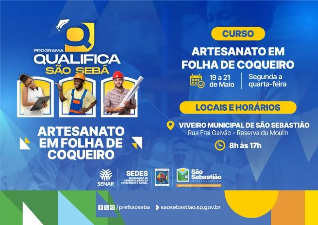 São Sebastião - SP Qualifica São Sebá abre inscrições para curso gratuito de Artesanato em Folha de Coqueiro