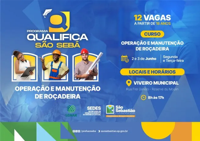 São Sebastião - SP Prefeitura de São Sebastião abre inscrições para o curso de Operação e Manutenção de Roçadeira